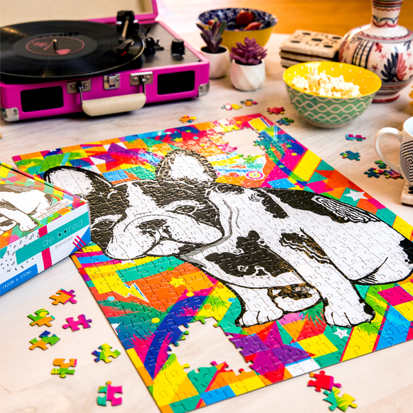 Enjoy assembling this vibrant 500-piece puzzle featuring a French Bulldog design. Delve into a colorful world while unplugging and destressing.• 500 pieces• French Bulldog design• Vibrant colors• Made of recycled paperboard