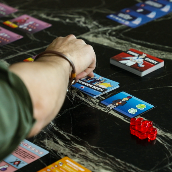 Players work together to get through the exams, using their skills and rolls to help each other out.