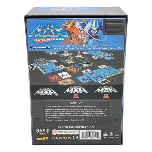 Featuring enemies, stages and Robot Masters from Mega Man 1, Mega Man 2, and Mega Man 3, you can play through campaigns that recreate those titles, or mix and match to create your own customized one! Whether you're a fan of the video games or simply enjoy cooperative games, Mega Man Adventures is a quick-playing, action-packed game for everyone to enjoy!